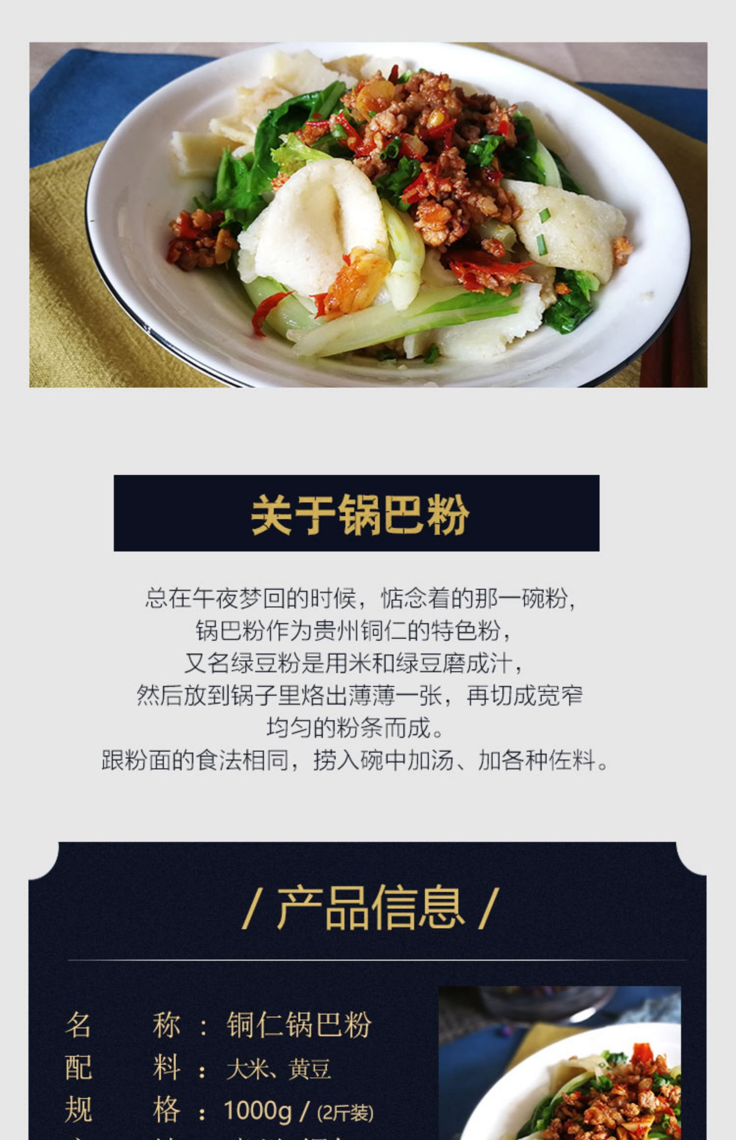 产品描述: 生产许可证编号 : SC10152060300065 厂名 : 贵州黔味千寻食品有限公司 厂址 : 贵州省铜仁市万山区仁山街道丹苑社区西南商贸城安置点11栋1楼 厂家联系方式 : 18385941289 配料表 : 绿豆,大米 储藏方法 : 冷藏 保质期 : 12 食品添加剂 : 粮食加工品 产地 : 中国大陆 省份 : 贵州省 城市 : 铜仁市 包装方式 : 散装 净含量 : 500g
