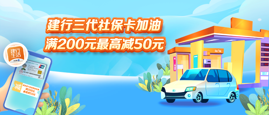 即日起至2022年12月31日(每周六、周日),建行三代社保卡(卡号62146771开头)持卡人,使用建行生活APP绑定建行社保卡在中石化指定站点出示建行生活付款码可享受满200元随机立减5-50元优惠,每客每天限享受1次优惠,每月限享2次优惠,活动期间限享6次优惠。 *每日名额800个,总名额14000个,领完即止。