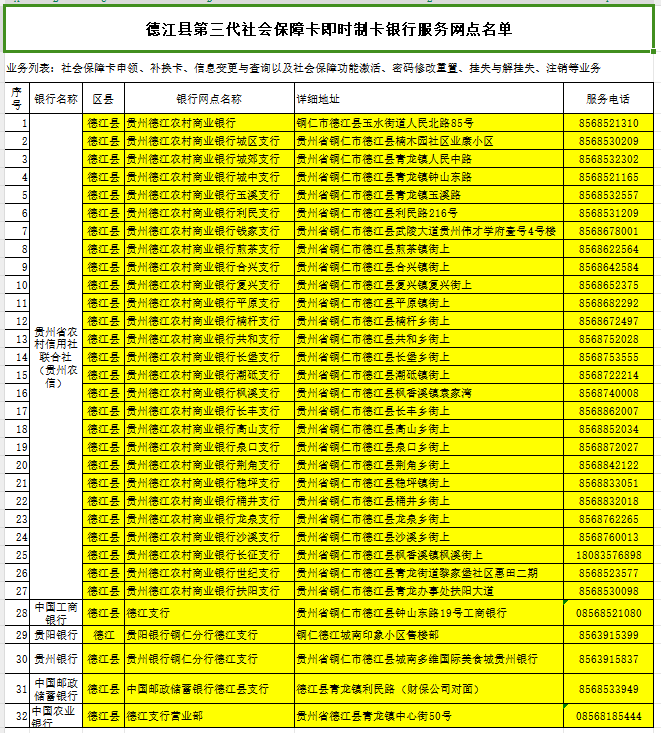 社保卡合作银行服务网点: